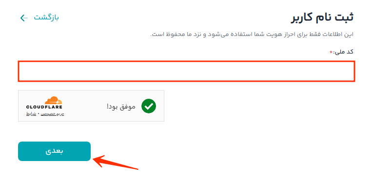 در صورت آزاد بودن کد ملی، وارد مرحله بعد میشوید.