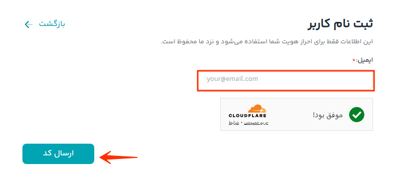 کد تأیید ارسالشده به ایمیل را در کادر مربوطه وارد نمایید.