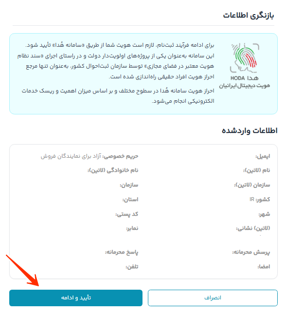 اطلاعات وارد شده را بررسی کرده و در صورت صحت، آنها را تأیید کنید.